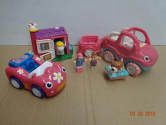 1 x Container and Lid 1 x Trailer 1 x Dog Bed 3 x People 1 x Dog 1 x Horse 1 x Stable 1 x Car 1 x Jeep